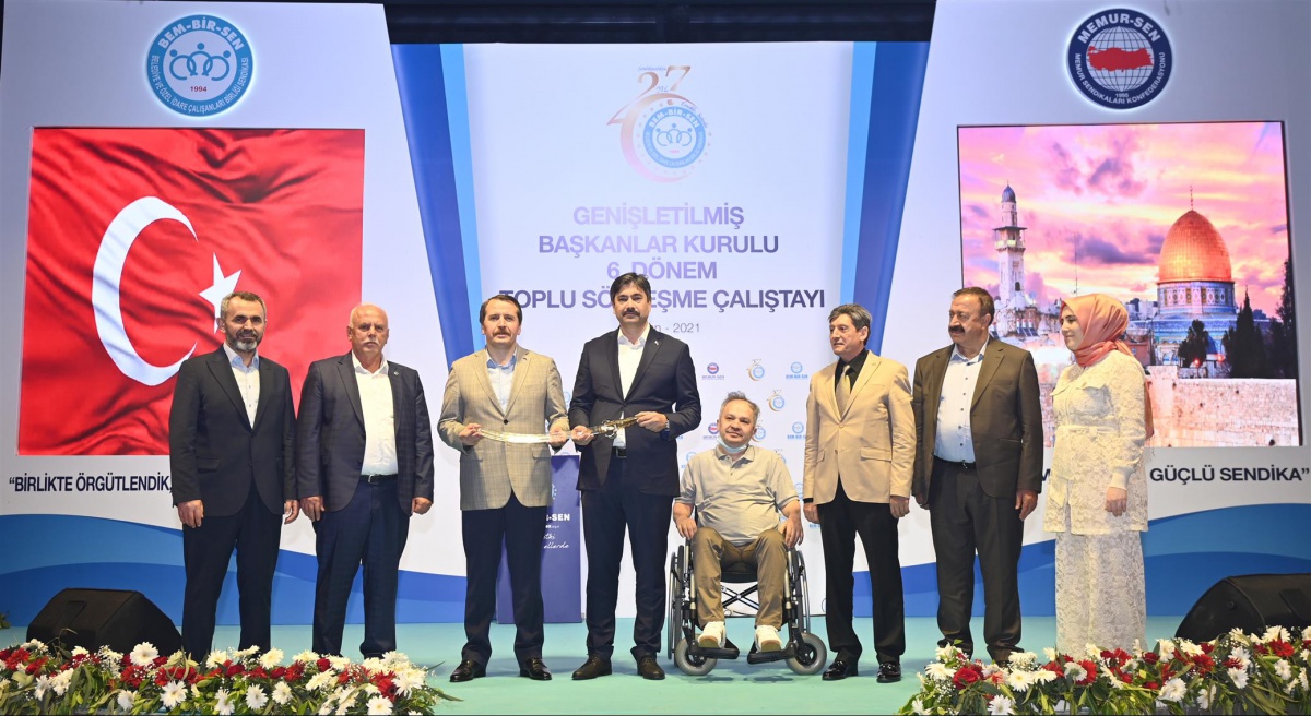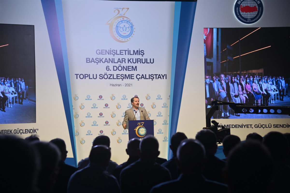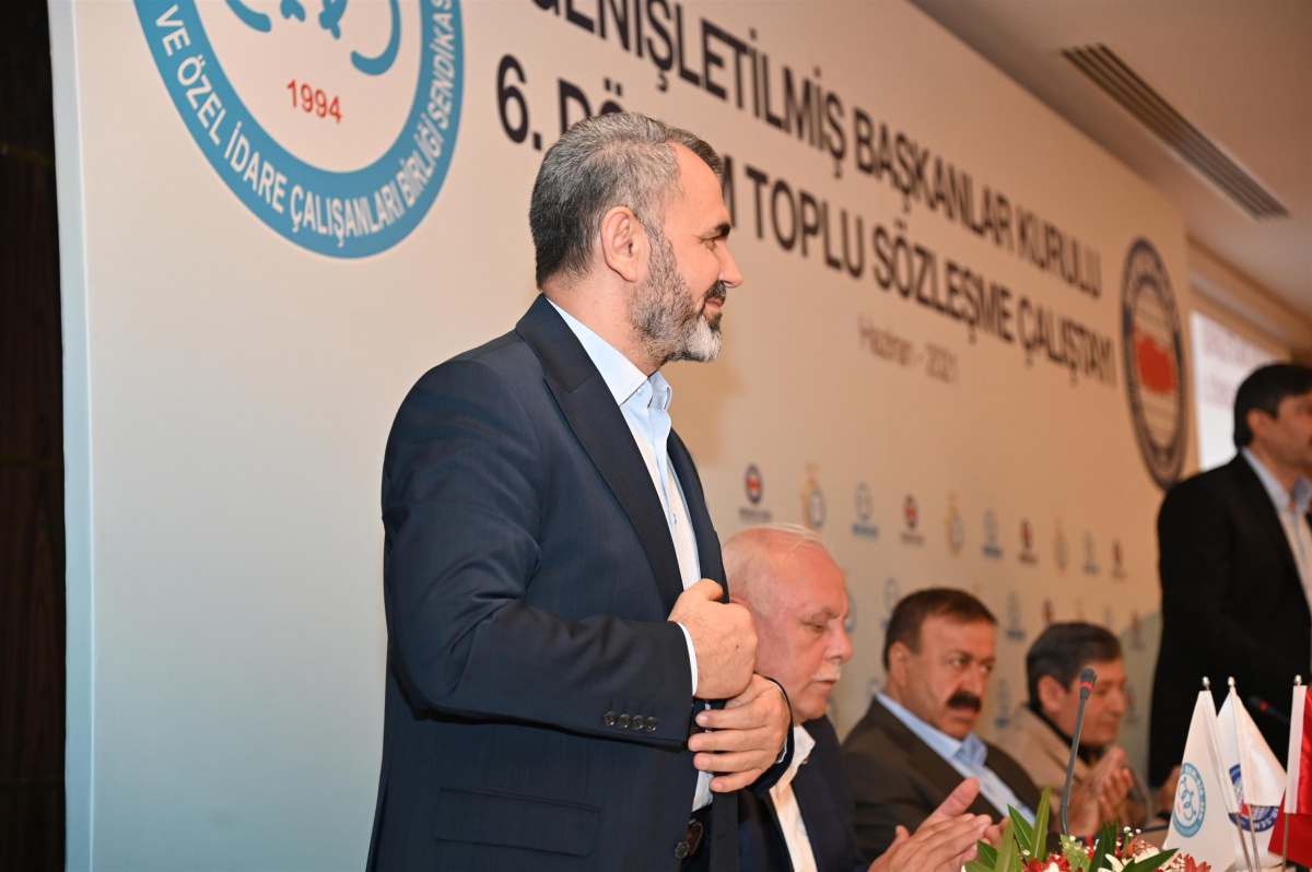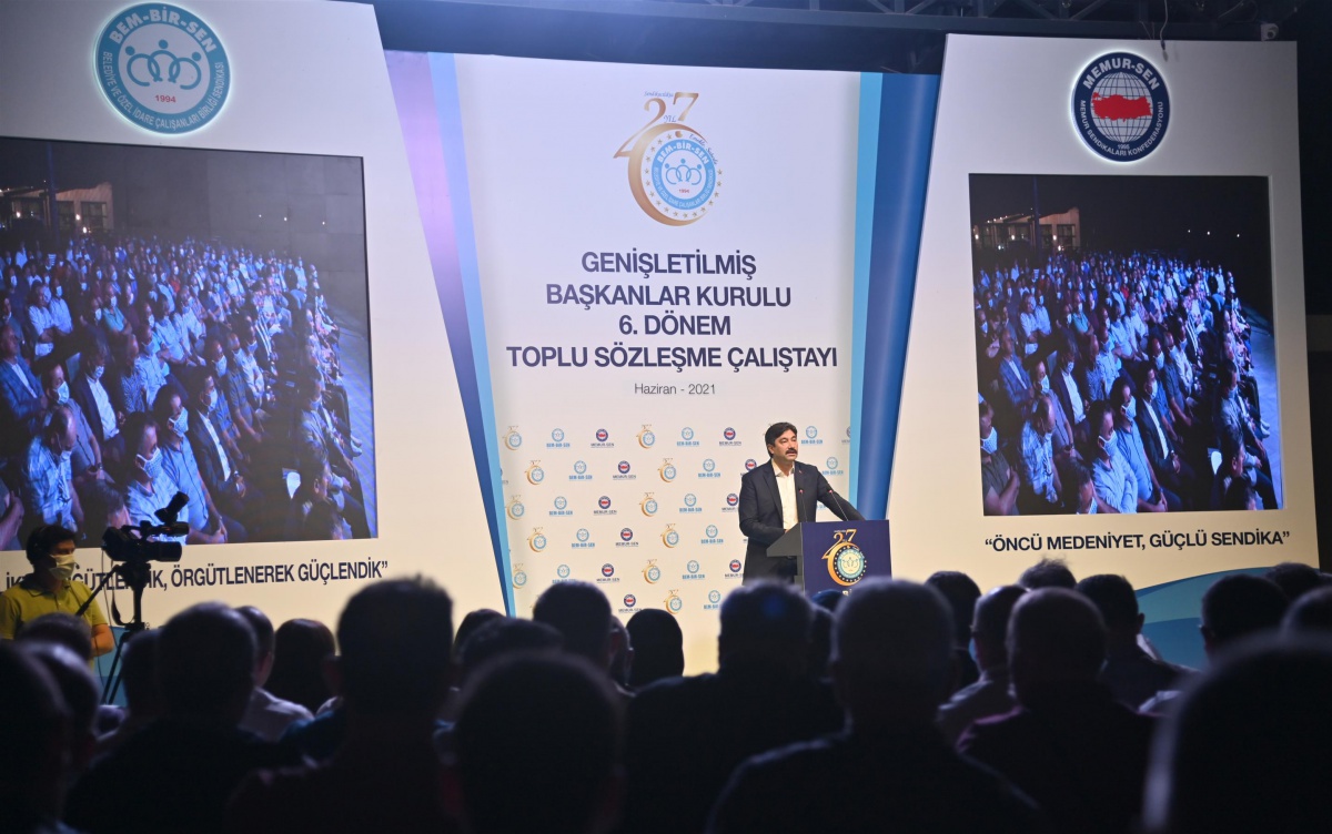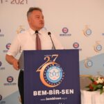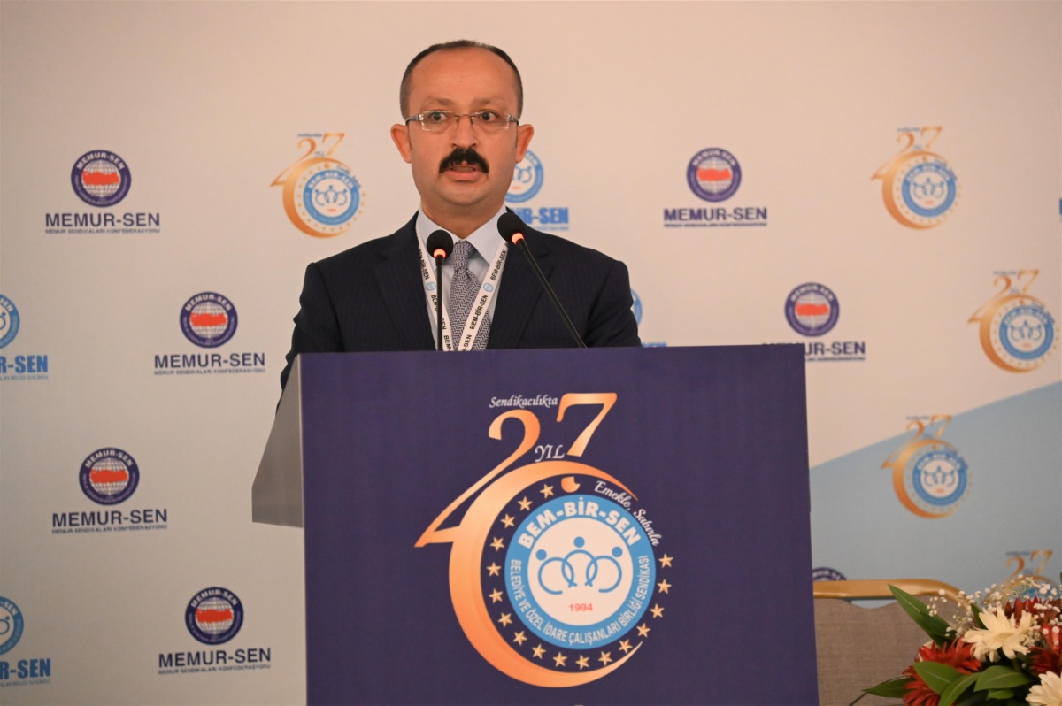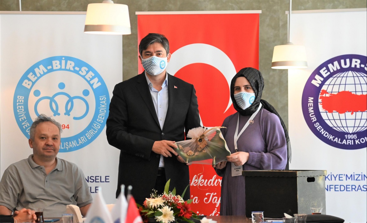 Son iki yıl büyük bir mücadele ile geçti. Bu konuda ben Memur-Sen Konfederasyonu Genel Başkanımız ve Memur-Sen Konfederasyonuna üye bütün sendikalarımıza bu eylemlerde bize destek verdiği için ve bütün eylemlerin kararı ve icrasında bize destek verdiği için Memur-Sen Konfederasyonu Genel Başkanımız Ali Yalçın’a şükranlarımız sunuyorum.Sendikacılığın haysiyetine, emeğin izzetine, emekçinin onuruna yakışan, Yerel Yönetim çalışanlarımızın sorumluluğunu omuzlarında hissederek, almış olduğu kazanımların yanı sıra emekçinin hakkını koruyan sendikanın adıdır;