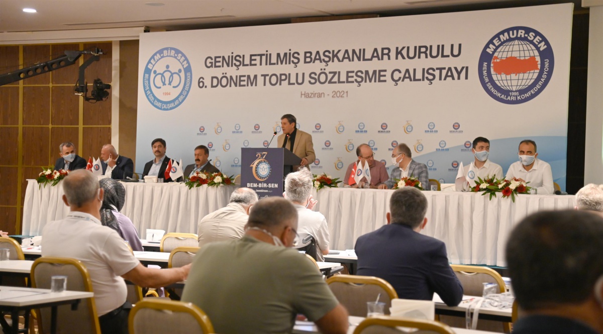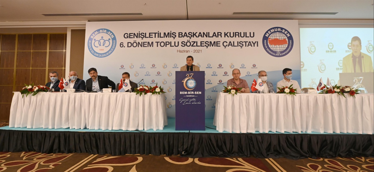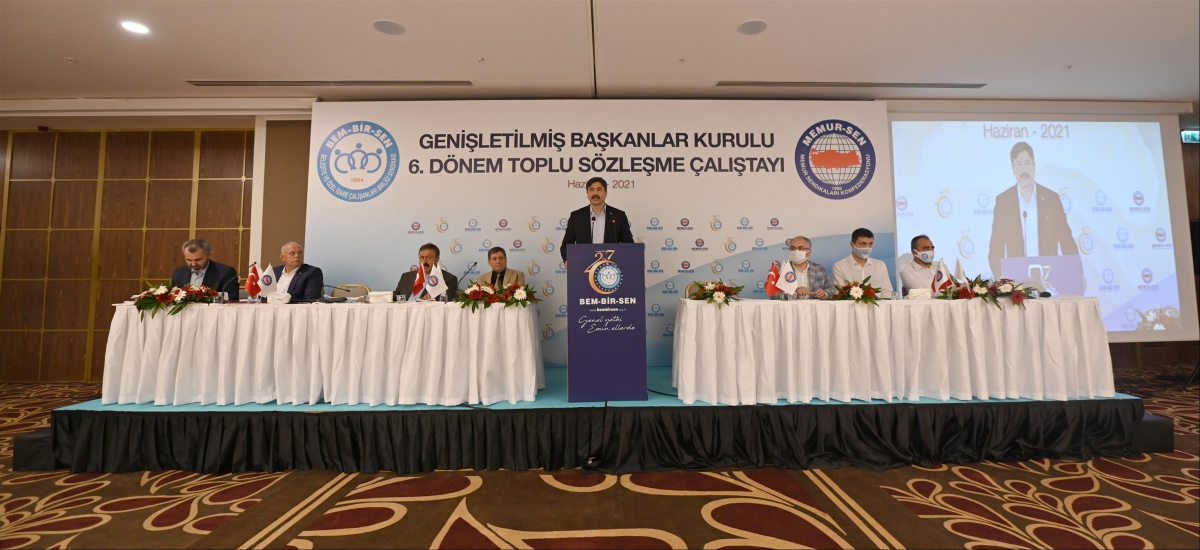 Bem-Bir-Sen Başkanlar Kurulu ve 6. Dönem Toplu Sözleşme Çalıştayımızı Genel Başkanımız Levent Uslu, Genel Başkan Yardımcılarımız Medeni Sevinç, Nurettin Sever, Ercan Olgun, Recayi Karslı, Şube/İl Başkanlarımız, Kadınlar Komisyonlarımız, Engelliler Komisyonlarımız, Genel Başkan Danışmanlarımız, Genel Merkez Hukuk, Teşkilat, Basın Birimlerimiz ve Şube/İl Yönetimlerimizin katılımıyla, Genişletilmiş Başkanlar Kurulu toplantımızı ise Memur-Sen Genel Başkanımız Ali Yalçın’ın teşrifleriyle birlik, beraberlik içerisinde büyük bir coşkuyla gerçekleştirdik.