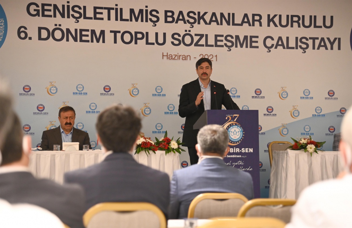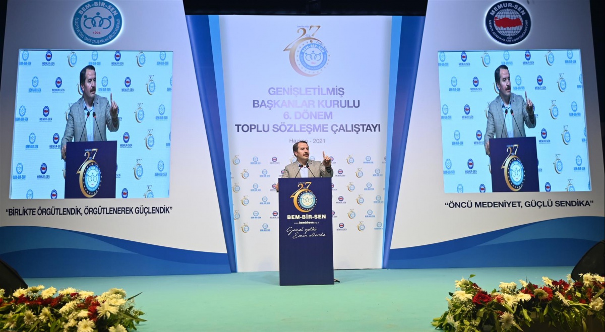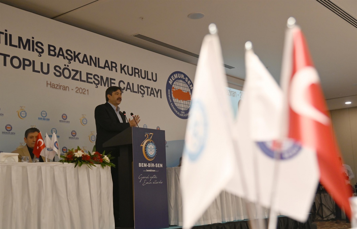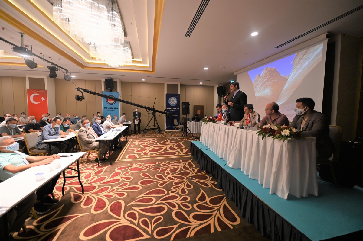 Düzenlenen toplantılar ve çalıştayın ardından kapanış toplantısına katılarak Bem-Bir-Sen Teşkilatlarımızla bir araya gelen Memur-Sen Genel Başkanımız Ali Yalçın, Bem-Bir-Sen olarak 31 Mart 2019 Mahalli İdareler seçimlerinin ardından el değiştiren birçok belediyede uygulamaya konuşan, baskı, sürgün, mobbing politikasına karşı Bem-Bir-Sen’in onurlu ve dik duruşunun sendikal tarihte yer alacak, emeğin ve ekmeğin mücadelesinde hep hatırlanacağını ifade etti.