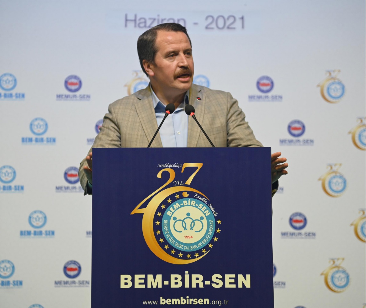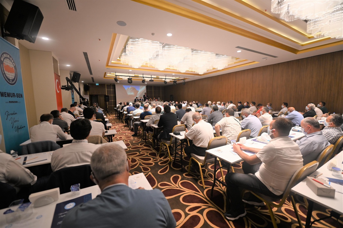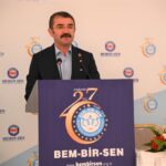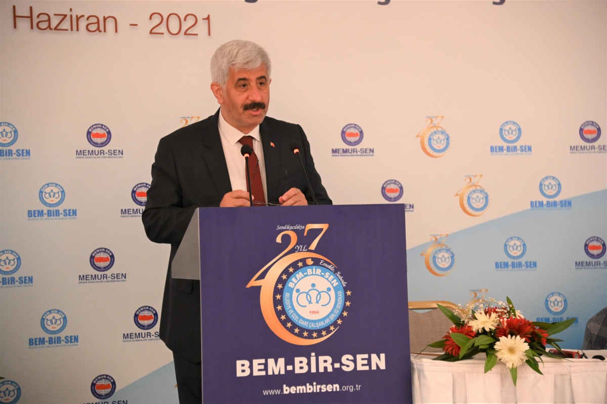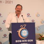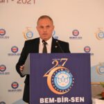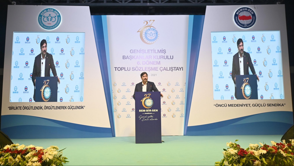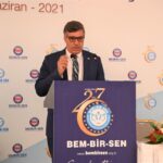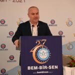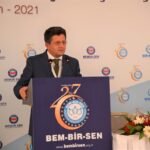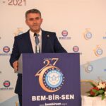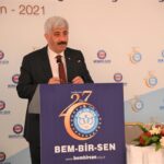 “Bem-Bir-Sen’imizin 27 yıllık mücadele tarihinin son iki yıl içerisindeki eylemselliği 25 yıldan daha fazladır.” ifadelerini kullanan Memur-Sen Genel Başkanımız Yalçın, “Son iki yılda en büyük stresle yüzleşiyorsunuz. Son iki yıl içerisinde yerel yönetimlerin el değiştirmesiyle yıldırmalar, mobbingler, sürgünler ve entikalarla yüz yüze geliyorsunuz. Direyetli ve güçlü bir teşkilat olarak, bu kadar saldırıya, bu kadar yıldırmaya, baskıya, zulme, sürgüne rağmen, adam gibi duran, yel kayadan ne götürür deyip, cüssesini koruyan bir teşkilat burası, bu teşkilatın lider kadrosunu yürekten selamlıyorum. Biz birbirimize tutunmak zorundayız. Beraber hareket etmek durumundayız.5 yıl içinde en fazla üye kaydı yaptığı halde en fazla yıldırma, mobbing, baskı, zulümle yüzleşen bir teşkilat olarak böyle zor zamanda bu kadar üye yapmak. Her adamın işi değil, Er adamın işi. Onun için herkesi yürekten kutluyorum.” dedi.