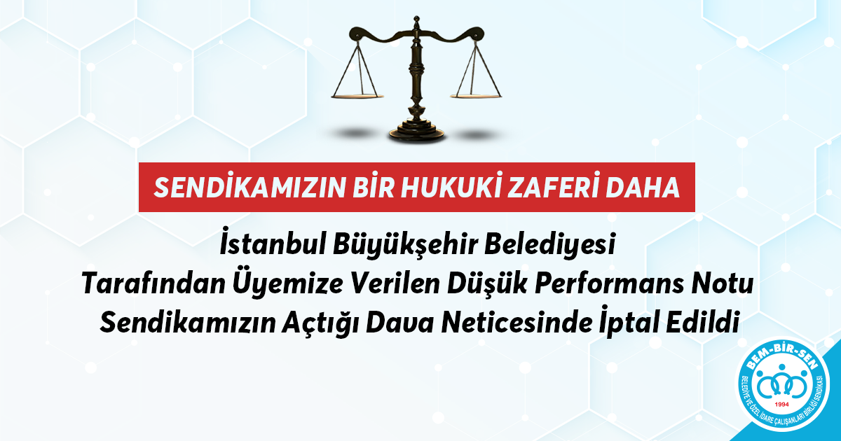 Daha önce birçok hukuksuz karara imza atan ve sendikamızın açtığı davalar neticesinde söz konusu kararları mahkemeden dönen İstanbul Büyükşehir Belediyesi’nin sürdürdüğü baskı ve mobbinglere mahkeme bir kez daha ‘dur’ dedi. Sendikamızın açtığı dava neticesinde İstanbul Büyükşehir Belediyesi Merkez İtfaiye Şube Müdürlüğünde, İşyeri Temsilcimiz olarak görev yapan İtfaiye Eri Memurun Avrupa Yakası İtfaiye Şube Müdürlüğüne atanması kararını mahkeme iptal etti.